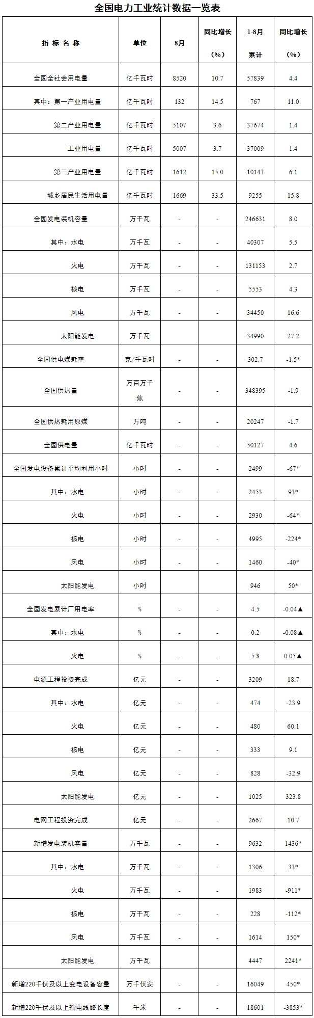 注:1.全社會用電量為全口徑數(shù)據(jù),全國供電量為調度口徑數(shù)據(jù)。2.“同比增長”列中,標*的指標為絕對量;標▲的指標為百分點。