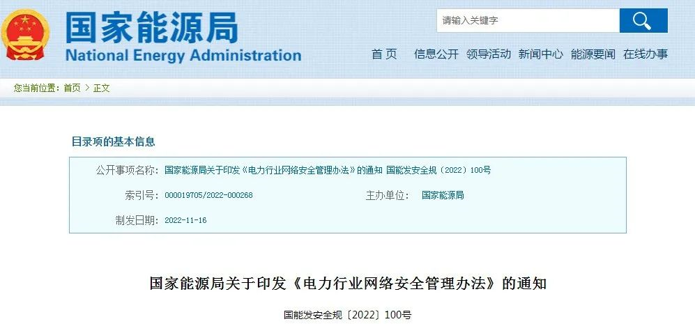 12月12日,國家能源局發(fā)布《電力行業(yè)網(wǎng)絡(luò)安全管理辦法》。