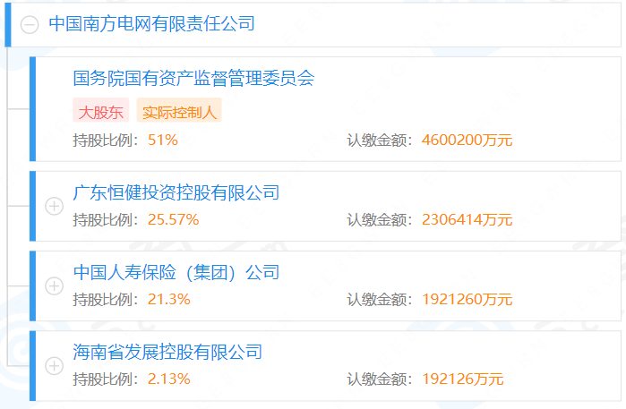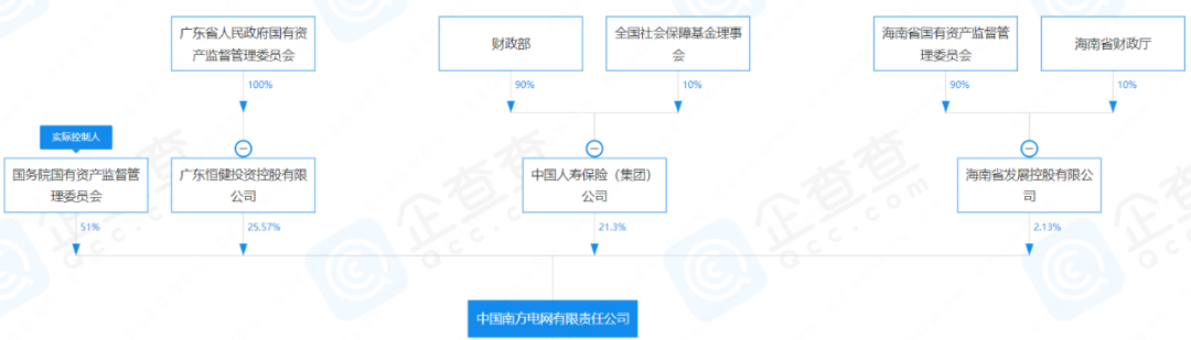 據(jù)媒體2021年12月報道,完善南方電網股權結構推動高質量發(fā)展專題會議在深圳召開,南方電網股權結構調整為國務院國資委持股51%、廣東省人民政府持股25.57%、中國人壽保險(集團)公司持股21.3%、海南省人民政府持股2.13%。
