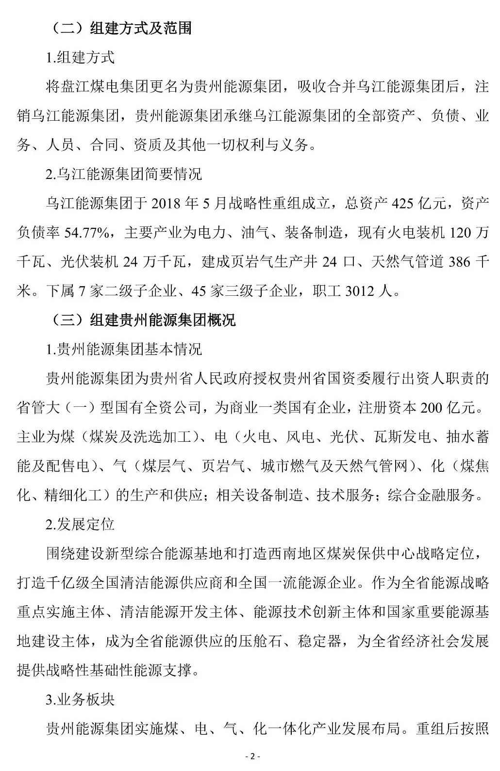目前,貴州能源集團正按批復的組建方案有序組建,吸收合并、業(yè)務整合、工商變更登記等工作有序開展。