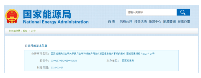 3月9日,國(guó)家能源局發(fā)布的《關(guān)于按月公布和報(bào)送戶用光伏項(xiàng)目信息有關(guān)事項(xiàng)的通知》。