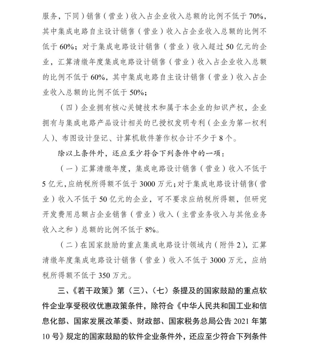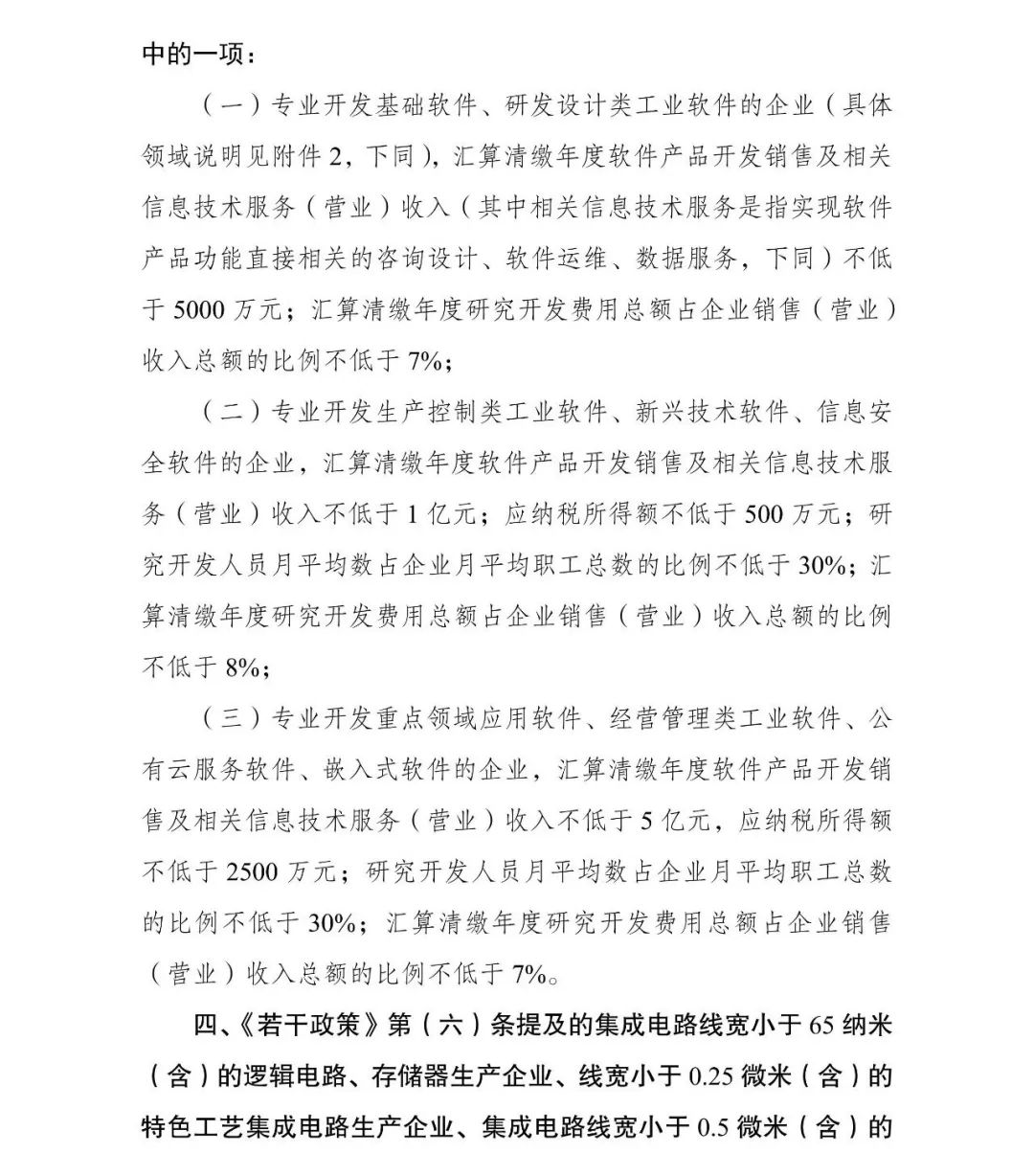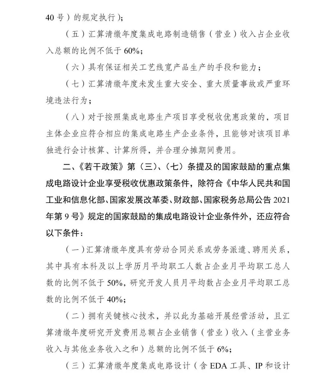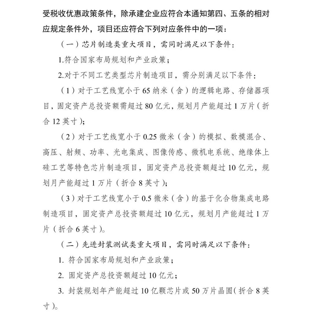 為促進我國集成電路產(chǎn)業(yè)持續(xù)健康發(fā)展,根據(jù)《國務院關于印發(fā)新時期促進集成電路產(chǎn)業(yè)和軟件產(chǎn)業(yè)高質(zhì)量發(fā)展若干政策的通知》(國發(fā)〔2020〕8號,以下簡稱《若干政策》)及其配套政策有關規(guī)定,經(jīng)研究,2023年享受稅收優(yōu)惠政策的集成電路企業(yè)或項目、軟件企業(yè)清單(以下簡稱“清單”)制定工作,延用2022年清單制定程序、享受稅收優(yōu)惠政策的企業(yè)條件和項目標準?,F(xiàn)就有關事項通知如下: