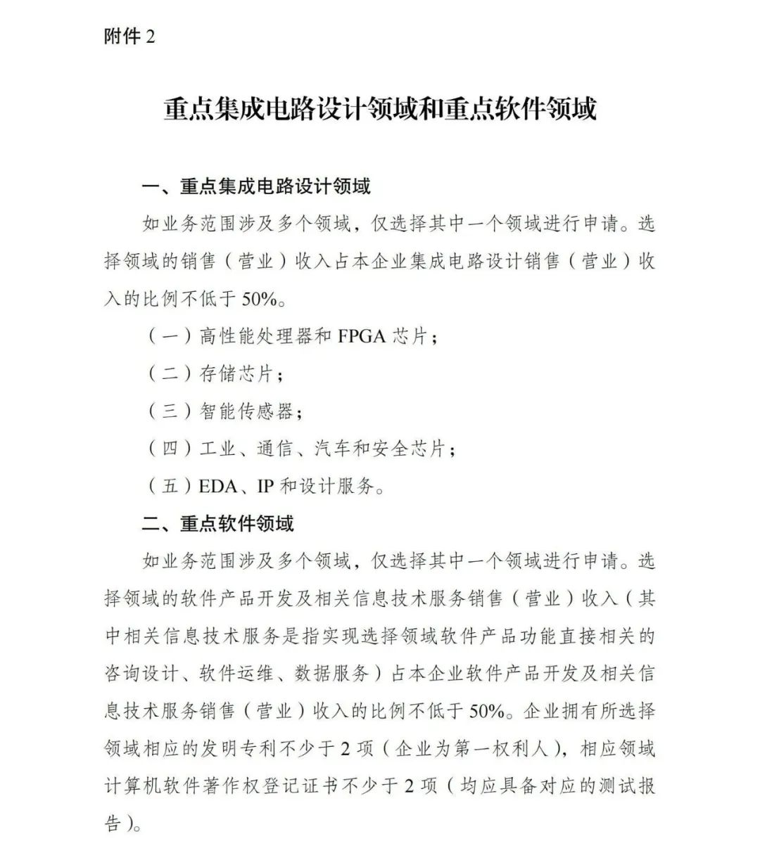 2.重點集成電路設計領域和重點軟件領域