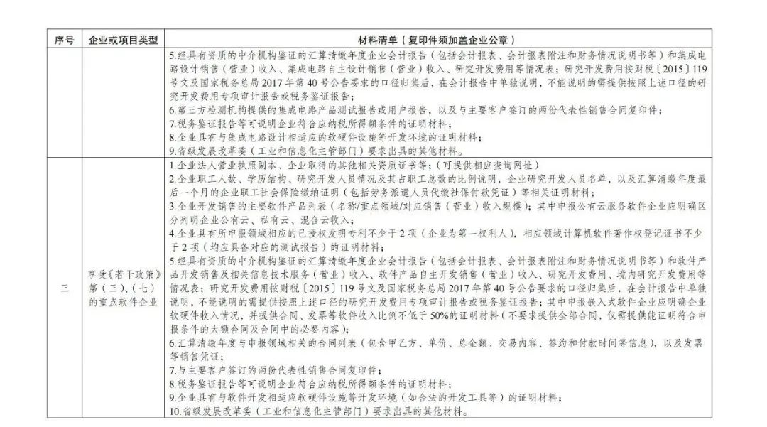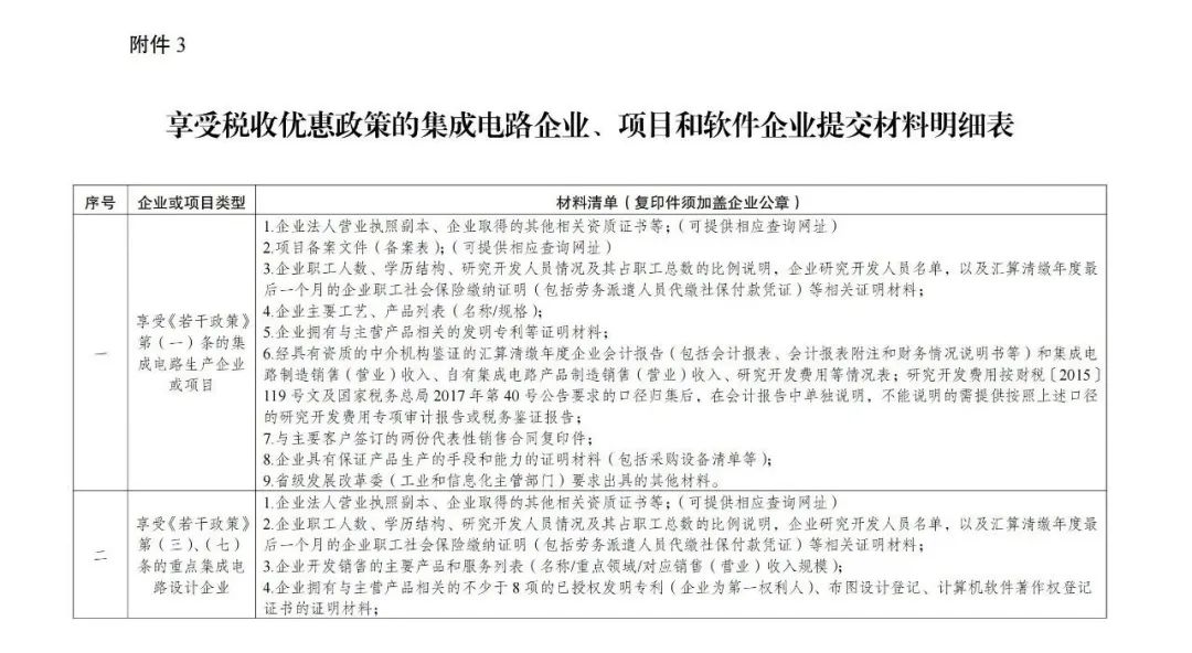 3.享受稅收優(yōu)惠政策的集成電路企業(yè)、項目和軟件企業(yè)提交材料明細表