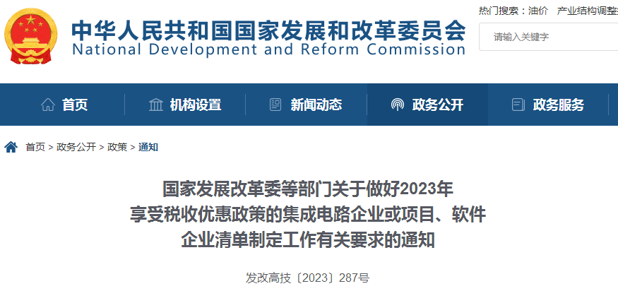 國家發(fā)展改革委等部門關于做好2023年享受稅收優(yōu)惠政策的集成電路企業(yè)或項目、軟件企業(yè)清單制定工作有關要求的通知