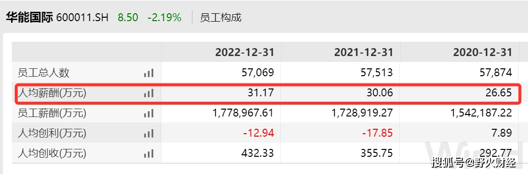 華能國(guó)際薪酬總額大約178億元,人均薪酬超過31萬元,比2021年的30萬元又增加1萬元;2020年人均薪酬大約26.7萬元。