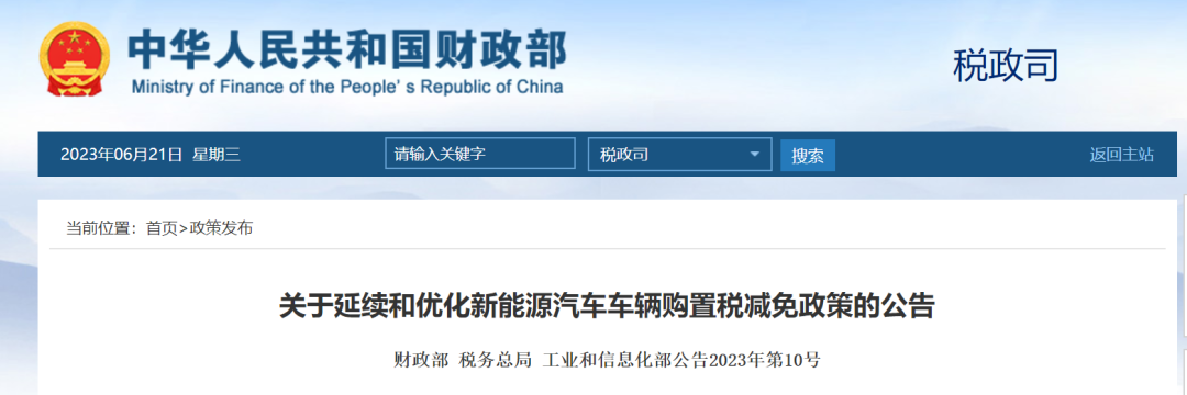 為支持新能源汽車產(chǎn)業(yè)發(fā)展,促進(jìn)汽車消費(fèi),現(xiàn)就延續(xù)和優(yōu)化新能源汽車車輛購置稅減免政策有關(guān)事項(xiàng)公告如下: