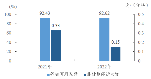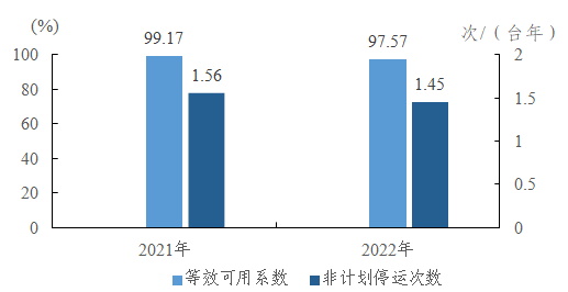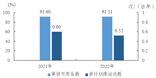 圖2 2021—2022年燃煤機(jī)組主要運行可靠性指標(biāo)