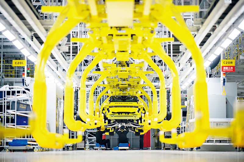 推進(jìn)新型工業(yè)化是實(shí)現(xiàn)經(jīng)濟(jì)高質(zhì)量發(fā)展的戰(zhàn)略選擇。圖為2023年1月11日,湖北省武漢市經(jīng)開(kāi)區(qū)智能網(wǎng)聯(lián)和電動(dòng)汽車(chē)產(chǎn)業(yè)園內(nèi),工人在一家汽車(chē)公司的流水線上作業(yè)。 新華社記者 肖藝九/攝