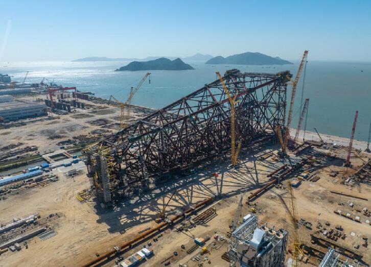我國自主設(shè)計建造的深水導(dǎo)管架“海基二號”建設(shè)完工。“?;?rdquo;導(dǎo)管架總高338米,總重達3.7萬噸,均刷新亞洲紀錄,將與“海洋石油122”共同服役于我國首個深水油田流花11-1/4-1油田,標志我國海洋深水油氣裝備設(shè)計建造能力實現(xiàn)穩(wěn)步提升。