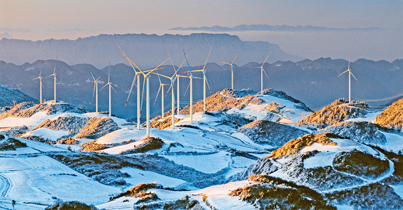 我國持續(xù)推進(jìn)產(chǎn)業(yè)結(jié)構(gòu)和能源結(jié)構(gòu)調(diào)整,為能源電力綠色低碳轉(zhuǎn)型奠定了堅實(shí)基礎(chǔ)。圖為2024年1月24日拍攝的湖北省宜昌市秭歸縣云臺荒風(fēng)力發(fā)電場。 人民圖片 雷勇/攝