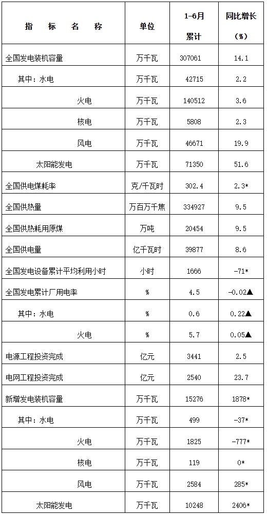 7月20日,國(guó)家能源局發(fā)布1-6月份全國(guó)電力工業(yè)統(tǒng)計(jì)數(shù)據(jù)。
