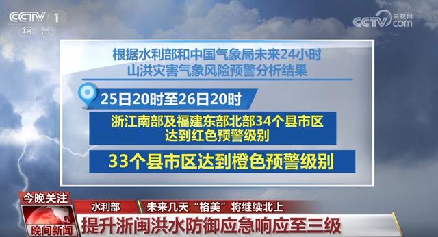 根據(jù)水利部和中國(guó)氣象局未來(lái)24小時(shí)山洪災(zāi)害氣象風(fēng)險(xiǎn)預(yù)警分析結(jié)果,25日20時(shí)至26日20時(shí),浙江南部及福建東部北部34個(gè)縣市區(qū)達(dá)到紅色預(yù)警級(jí)別、33個(gè)縣市區(qū)達(dá)到橙色預(yù)警級(jí)別。根據(jù)《水利部水旱災(zāi)害防御應(yīng)急響應(yīng)工作規(guī)程》,水利部將針對(duì)浙江、福建兩省的洪水防御Ⅳ級(jí)應(yīng)急響應(yīng)提升至Ⅲ級(jí)。