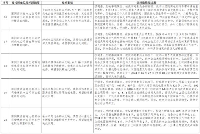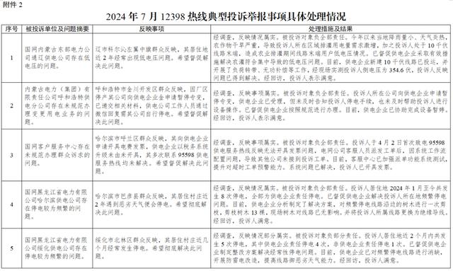 針對群眾反映的投訴舉報(bào),國家能源局派出機(jī)構(gòu)嚴(yán)格根據(jù)國家有關(guān)法規(guī)政策規(guī)定進(jìn)行處理。一是督促供電企業(yè)加強(qiáng)臺(tái)區(qū)等設(shè)備改造力度,縮短供電半徑,提高電網(wǎng)轉(zhuǎn)供、互供能力,解決故障停電、低電壓等電能質(zhì)量問題;二是要求供電企業(yè)加強(qiáng)設(shè)備隱患排查整治、停電搶修管理,加大線路巡視頻次,及時(shí)消除隱患缺陷,增加搶修資源投入,提升設(shè)備管控和停電搶修能力,切實(shí)提高供電質(zhì)量;三是通過行政處罰、監(jiān)管約談、責(zé)令整改等方式,糾正有關(guān)企業(yè)違法違規(guī)行為,維護(hù)公平公正的市場秩序和群眾合法權(quán)益;四是通過解釋說明、澄清事實(shí),消除群眾誤解。(2024年7月12398熱線典型投訴舉報(bào)事項(xiàng)具體處理情況,見附件2)