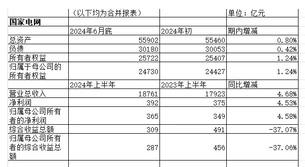 電力網(wǎng)公眾號(hào)曾在2024年9月1日發(fā)表《兩大電網(wǎng)2024年上半年賺多少?》一文,國(guó)家電網(wǎng)2024年上半年收入18761億元,去年同期17923億元,同比增長(zhǎng)4.68%;凈利潤(rùn)392億元,去年同期375億元,同比增4.53%