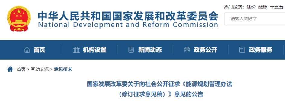 為貫徹落實黨的二十屆三中全會精神,進(jìn)一步健全能源規(guī)劃制度體系,按照《中華人民共和國能源法》有關(guān)規(guī)定,國家能源局修訂形成了《能源規(guī)劃管理辦法(修訂征求意見稿)》,現(xiàn)向社會公開征求意見。公眾可通過以下途徑和方式提出反饋意見: