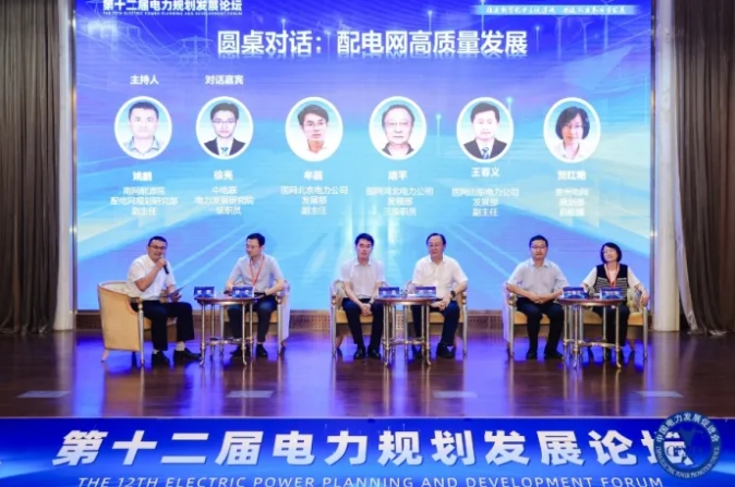 配電網(wǎng)高質(zhì)量發(fā)展圓桌對話由南方電網(wǎng)能源研究院配電網(wǎng)規(guī)劃研究部副主任姚鵬主持,中電聯(lián)電力發(fā)展研究院一級職員徐亮、國網(wǎng)北京市電力公司發(fā)展部副主任牟磊、國網(wǎng)河北省電力有限公司發(fā)展部三級職員胡平、國網(wǎng)山東省電力公司發(fā)展部副主任王春義、貴州電網(wǎng)公司規(guī)劃部總經(jīng)理賀紅艷圍繞新型電力系統(tǒng)下“安全高效、清潔低碳、柔性靈活、智慧融合”新型配電系統(tǒng)建設主題展開互動對話。在技術報告環(huán)節(jié),南京南瑞新能源科技有限公司董事、黨委書記,國電南瑞科技股份有限公司南京電氣控制分公司總經(jīng)理石磊做題為《“4S”儲能系統(tǒng)關鍵技術》報告;國網(wǎng)信通億力科技有限責任公司董事長、黨委書記劉峰做題為《人工智能技術驅(qū)動下的電網(wǎng)數(shù)智化項目實踐》的報告;隆基綠能科技股份有限公司中國區(qū)副總裁鄭江偉做題為《創(chuàng)新引領新能源行業(yè)高質(zhì)量發(fā)展》的報告;江蘇省未來網(wǎng)絡創(chuàng)新研究院團隊總監(jiān)魏亮做題為《面向電算協(xié)同的確定性網(wǎng)絡技術探索與實踐》的報告。