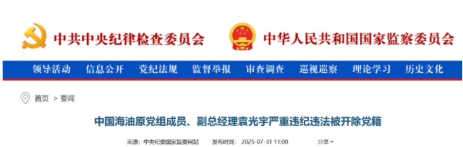 2025年3月1日,中央紀委國家監(jiān)委網(wǎng)站發(fā)布消息,袁光宇涉嫌嚴重違紀違法,接受中央紀委國家監(jiān)委紀律審查和監(jiān)察調(diào)查。