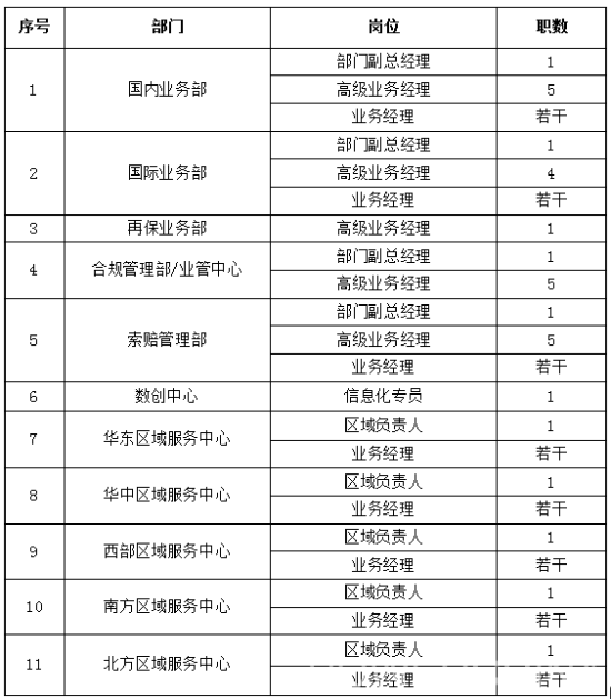 1.大學(xué)本科及以上學(xué)歷,5年以上保險公司、保險經(jīng)紀行業(yè)相關(guān)工作經(jīng)驗,有再保險業(yè)務(wù)工作經(jīng)歷者優(yōu)先。