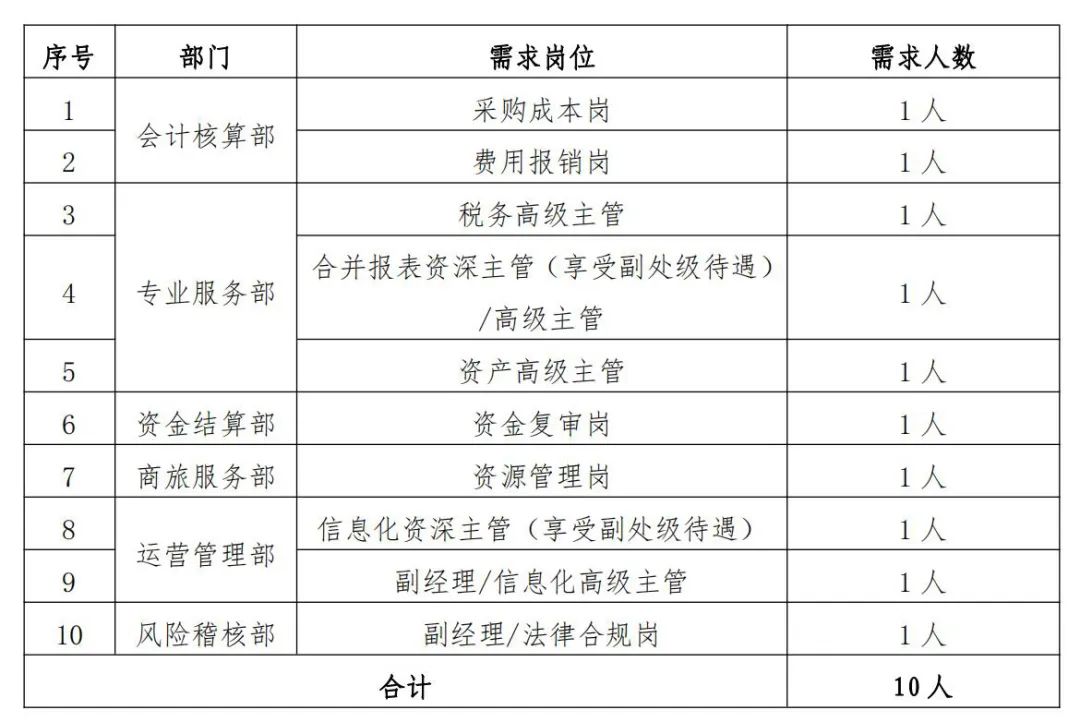 除上述基本條件、資格要求外,應(yīng)聘人員還應(yīng)符合《財務(wù)共享中心2022年社會招聘崗位需求表》(附件)中的資格要求。