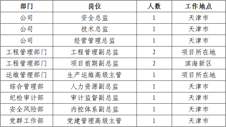 1.本次招聘對(duì)任職年限、年齡等的計(jì)算時(shí)間為2022年8月31日,工作地點(diǎn)為天津市及項(xiàng)目所在地。