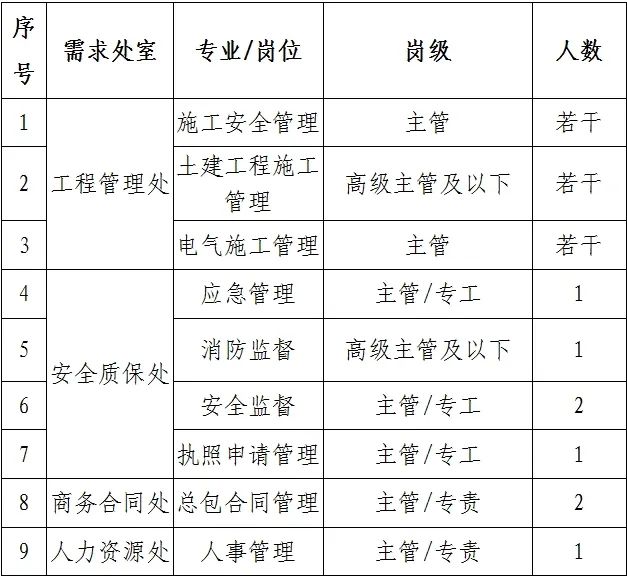 (2)副科級崗位:報名人員為副科級的,對任職年限不作要求;報名人員為一般員工的,需在主管/專工級崗位工作滿3年及以上。