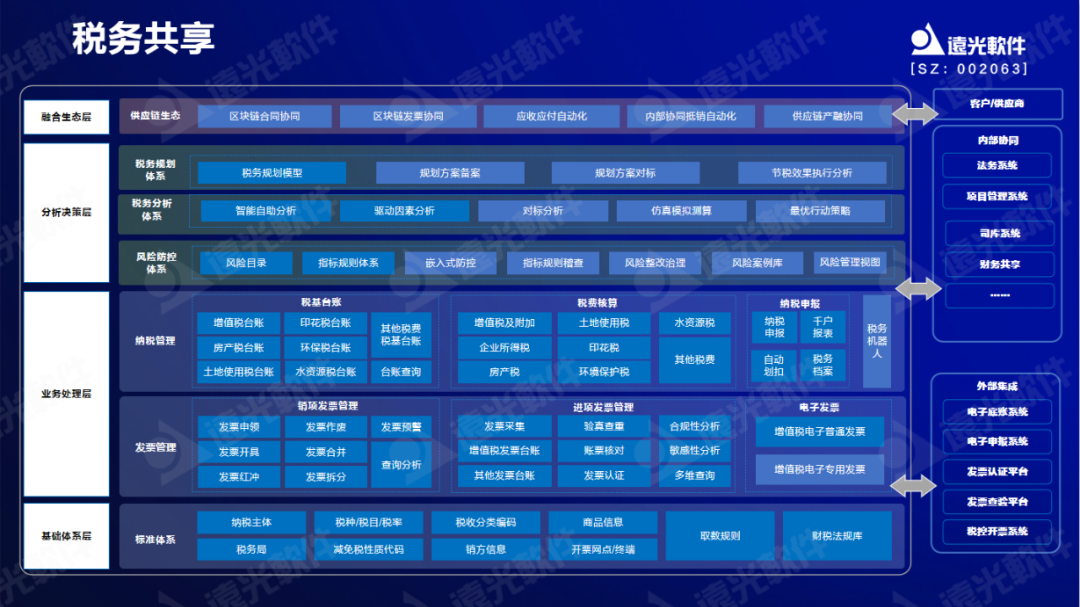 應(yīng)用先進(jìn)數(shù)字技術(shù)建立稅務(wù)標(biāo)準(zhǔn)體系,構(gòu)建全稅種、全業(yè)務(wù)屬性發(fā)票池,并通過搭建稅企直連通道服務(wù)建立全稅種智能辦稅平臺,實(shí)現(xiàn)全稅種的計(jì)稅、報(bào)稅、繳稅、歸檔全流程智能化處理。同時(shí),通過引入稅務(wù)局的監(jiān)管和審計(jì)規(guī)則來構(gòu)建稅務(wù)稽查模型,實(shí)現(xiàn)360度的稅務(wù)風(fēng)險(xiǎn)掃描,全面助力集團(tuán)企業(yè)推進(jìn)稅務(wù)管理的標(biāo)準(zhǔn)化、數(shù)字化、共享化、智慧化轉(zhuǎn)型。