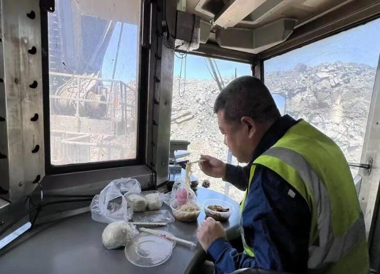 山西省朔州市中煤平朔集團東露天礦,電鏟挖掘機駕駛室內(nèi),司機邢利平在作業(yè)間隙吃午飯。