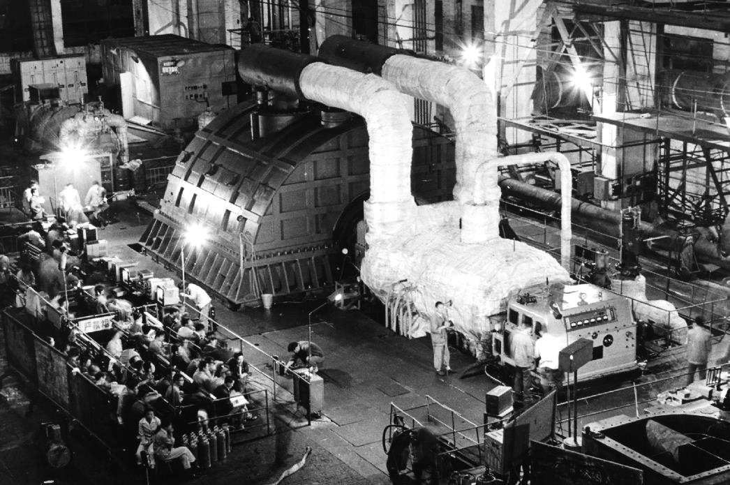 上個(gè)世紀(jì)八十年代,東方電氣集團(tuán)自主研制的第一代東方“爭(zhēng)氣機(jī)”——30萬(wàn)千瓦汽輪機(jī)在廠內(nèi)一次試車成功。