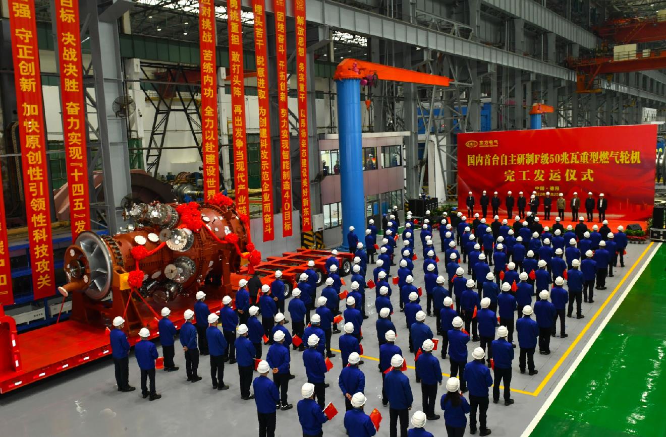 2022年11月25日,東方電氣集團(tuán)研制的國(guó)內(nèi)首臺(tái)完全自主知識(shí)產(chǎn)權(quán)的F級(jí)50兆瓦重型燃?xì)廨啓C(jī)發(fā)運(yùn)。該產(chǎn)品被譽(yù)為中國(guó)“爭(zhēng)氣機(jī)”,填補(bǔ)了我國(guó)自主燃?xì)廨啓C(jī)應(yīng)用領(lǐng)域空白,解決了多項(xiàng)“卡脖子”關(guān)鍵核心技術(shù)難題,為清潔能源領(lǐng)域提供自主可控全鏈條式的“中國(guó)方案”。該燃機(jī)現(xiàn)已成功投運(yùn)并成功通過(guò)2000小時(shí)滿負(fù)荷商業(yè)運(yùn)行。
