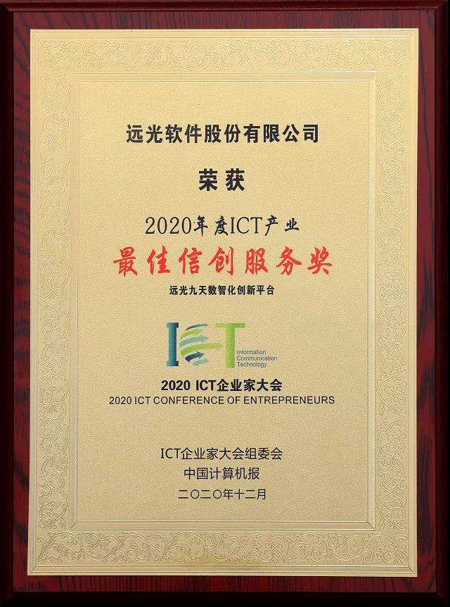 近日,2020ICT企業(yè)家大會(huì)在北京召開。大會(huì)對(duì)在2019-2020年ICT產(chǎn)業(yè)各個(gè)領(lǐng)域中表現(xiàn)卓越的企業(yè)、前沿技術(shù)平臺(tái)和創(chuàng)新解決方案進(jìn)行了表彰。其中,遠(yuǎn)光軟件自主研發(fā)的九天數(shù)智化創(chuàng)新平臺(tái)憑借先進(jìn)的技術(shù)創(chuàng)新能力和在信創(chuàng)服務(wù)領(lǐng)域的突出貢獻(xiàn),被授予“2020ICT 產(chǎn)業(yè)年度最佳信創(chuàng)服務(wù)獎(jiǎng)”。