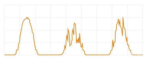 圖2為海外某200MW電站三天的實(shí)際發(fā)電曲線,電站采用1.42倍容配比+跟蹤系統(tǒng)設(shè)計(jì)。電站逆變器從早上8點(diǎn)到下午5點(diǎn)一直處于滿功率運(yùn)行狀態(tài),相較于圖1,該電站發(fā)電曲線幾乎呈平直狀態(tài),即使光照出現(xiàn)一定程度的波動(dòng),逆變器輸出功率也只是出現(xiàn)微小變化,整個(gè)電站的輸出更加穩(wěn)定。