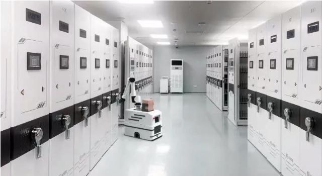 此外,還通過引入智能制造、物聯(lián)網(wǎng)技術(shù),結(jié)合票據(jù)交收設(shè)備、裝盒設(shè)備、AGV機器人、智能密集架、智能檔案盒等智能終端,實現(xiàn)實物檔案從交收、裝盒、歸檔全過程的無人自動化管理,并與線上電子檔案對接匹配,強化一體化管理。