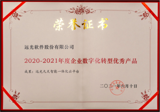 憑借強大的技術能力、協(xié)同創(chuàng)新能力和潛在應用價值,遠光九天平臺獲得了大會組委、活動評審和眾多企業(yè)、客戶的一致認可,獲選“2020-2021年度企業(yè)數(shù)字化轉型優(yōu)秀產(chǎn)品”。