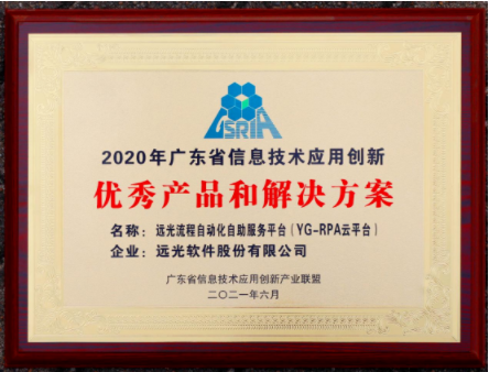 近日,遠光軟件自主研發(fā)的YG-RPA云平臺(流程化自動自助服務平臺)憑借其在數(shù)字化領域獨到的創(chuàng)新成果,榮獲廣東省信息技術應用創(chuàng)新產(chǎn)業(yè)聯(lián)盟頒發(fā)的“2020年廣東省信息技術應用創(chuàng)新優(yōu)秀產(chǎn)品和解決方案”獎。