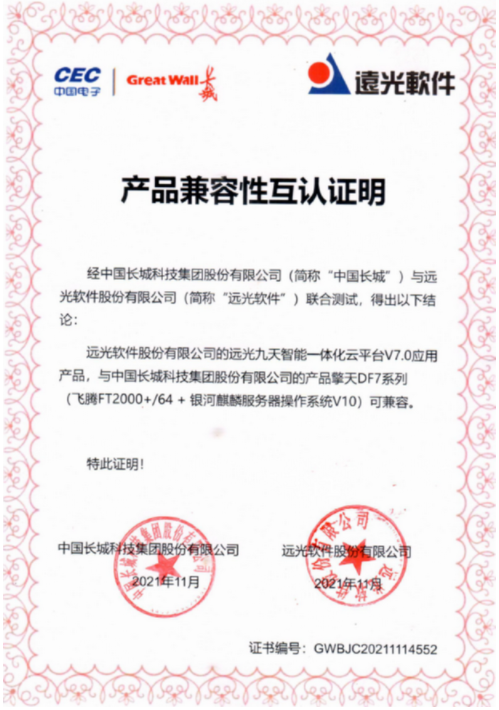 據(jù)遠(yuǎn)光軟件相關(guān)負(fù)責(zé)人介紹,遠(yuǎn)光九天云平臺以“使用國產(chǎn)化的工具研發(fā)國產(chǎn)化的系統(tǒng)運行在國產(chǎn)化的基礎(chǔ)設(shè)施之上”為目標(biāo),已經(jīng)和信創(chuàng)路線中的絕大部分廠商完成了互信認(rèn)證,包括華為鯤鵬服務(wù)器芯片、銀河麒麟服務(wù)器操作系統(tǒng)、統(tǒng)信桌面操作系統(tǒng)、達(dá)夢數(shù)據(jù)庫、中創(chuàng)中間件、360安全瀏覽器等,實現(xiàn)全棧式國產(chǎn)化適配,累計獲得兼容性互認(rèn)證書達(dá)35份。全面達(dá)到國產(chǎn)軟硬件平臺的通用兼容性要求,性能及可靠性得到全面驗證。階段性成果標(biāo)志著遠(yuǎn)光九天云平臺已構(gòu)建起“全棧式、全過程、全方位”的信創(chuàng)生態(tài)體系,在全面支持國產(chǎn)化方面邁出了關(guān)鍵一步。