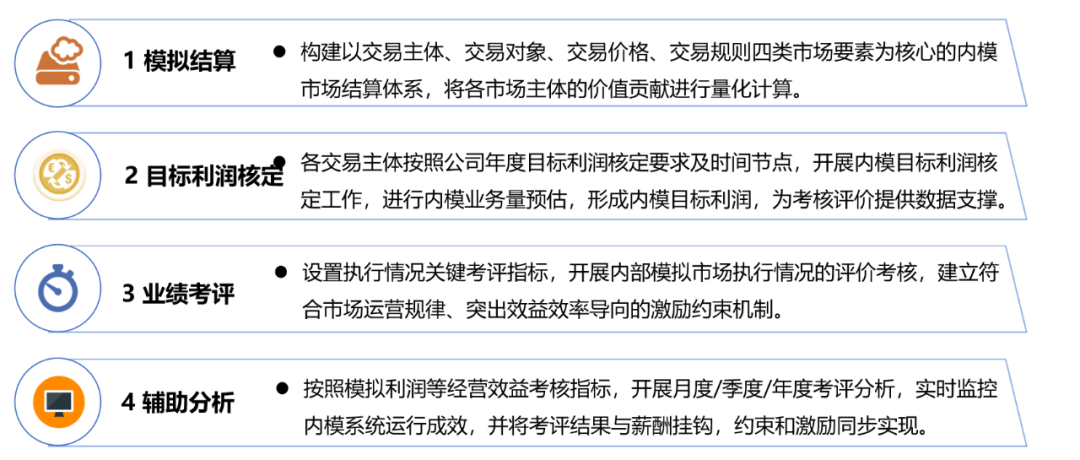 內(nèi)部模擬市場(chǎng)(簡(jiǎn)稱“內(nèi)模市場(chǎng)”)是將企業(yè)內(nèi)部各單位視同獨(dú)立市場(chǎng)主體進(jìn)行管理,引入市場(chǎng)交易機(jī)制,將以往內(nèi)部單位之間無償提供的支撐服務(wù)按照市場(chǎng)化模擬結(jié)算,在內(nèi)部各單位之間形成完整的收入、支出循環(huán),從而計(jì)算出各單位的模擬收入和模擬成本。內(nèi)模市場(chǎng)以“模擬利潤(rùn)”為核心,完整量化反映各單位的真實(shí)經(jīng)營(yíng)成果和價(jià)值貢獻(xiàn),使企業(yè)管理者了解各單位的真實(shí)經(jīng)營(yíng)水平和盈利能力,同時(shí)激活企業(yè)內(nèi)部各單位各部門各員工提質(zhì)增效的動(dòng)力,從而將外部市場(chǎng)壓力在企業(yè)內(nèi)部層層傳導(dǎo),打造創(chuàng)新管理機(jī)制,煥發(fā)企業(yè)發(fā)展活力。