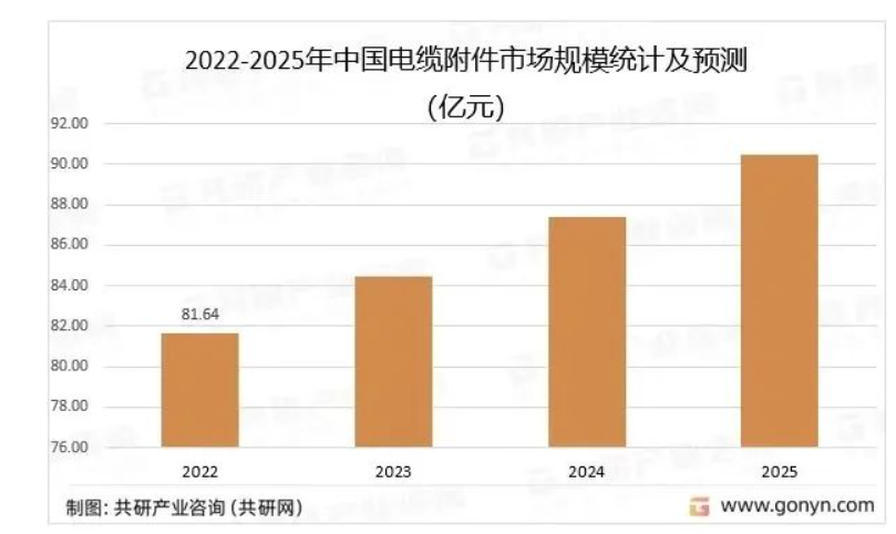 影響電纜附件需求的因素較多,如宏觀經(jīng)濟(jì)發(fā)展、電力電網(wǎng)領(lǐng)域固定資產(chǎn)投資以及下游行業(yè)發(fā)展情況、產(chǎn)品價(jià)格等。就宏觀經(jīng)濟(jì)發(fā)展?fàn)顩r而言,良好的經(jīng)濟(jì)發(fā)展態(tài)勢(shì)會(huì)促進(jìn)電力電網(wǎng)領(lǐng)域固定資產(chǎn)投資的增長(zhǎng),進(jìn)而帶動(dòng)電纜附件行業(yè)需求的增長(zhǎng);從下游行業(yè)發(fā)展?fàn)顩r來(lái)看,近年來(lái),中國(guó)電力電網(wǎng)、軌道交通、新能源等行業(yè)整體保持良好的發(fā)展態(tài)勢(shì),在一定程度上推動(dòng)了電纜附件行業(yè)需求的增加,2022年我國(guó)電纜附件市場(chǎng)規(guī)模達(dá)81.64億元,預(yù)計(jì)2025年有望突破90億元。
