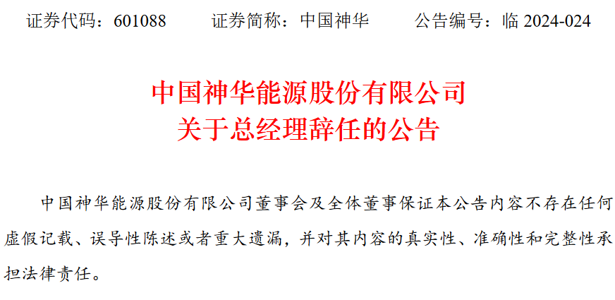 中國神華于5月31日發(fā)布公告稱,中國神華能源股份有限公司(“本公司”)董事會于 2024 年 5 月 30 日收到呂志韌先生遞交的書面辭呈。