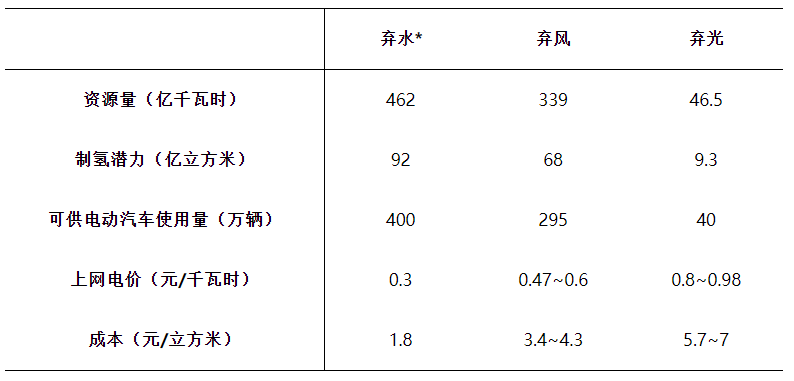 表1 利用棄水、棄風(fēng)和棄光制氫潛力及成本