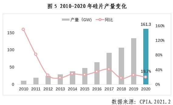 (二)產(chǎn)業(yè)規(guī)模持續(xù)擴(kuò)大盡管受到年初的疫情沖擊、7-8月多晶硅料企業(yè)安全事故及新疆地區(qū)疫情導(dǎo)致的硅料供應(yīng)緊張、以及7月開始由于光伏玻璃、EVA膠膜等供應(yīng)緊張導(dǎo)致的原輔材料價(jià)格上漲等黑天鵝事件,我國光伏產(chǎn)業(yè)在國內(nèi)外市場(chǎng)的推動(dòng)下,規(guī)模持續(xù)擴(kuò)大。其中,多晶硅產(chǎn)量39.2萬噸,同比增長14.6%;硅片產(chǎn)量161.3GW,同比增長19.7%;電池片產(chǎn)量134.8GW,同比增長22.2%;組件產(chǎn)量124.6GW,同比增長26.4%。