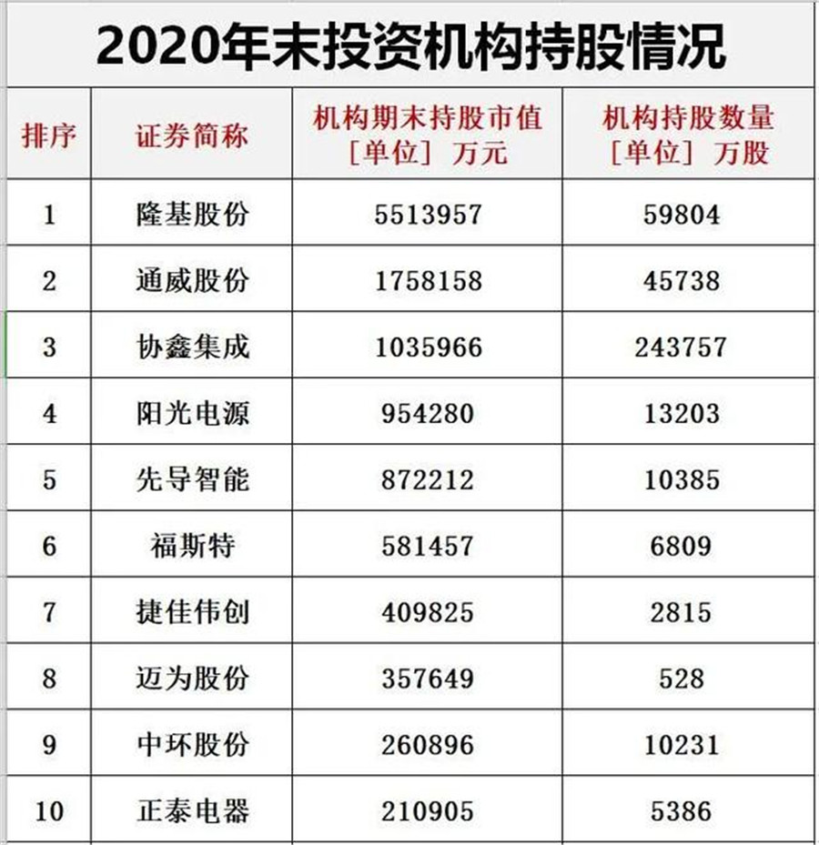 這也意味著,不少機(jī)構(gòu)投資者在2020年第四季度集中拋售了手里的“光伏籌碼(股票)”。