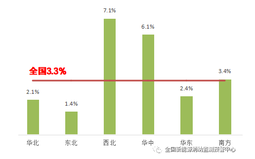 四季度,北京、天津基本無(wú)棄電問(wèn)題,山東、山西、河北棄電率分別為1.2%、2.1%、3.7%,蒙西地區(qū)棄電率為7.7%,為華北地區(qū)最高,同比上升1.5個(gè)百分點(diǎn)。華北地區(qū)全年新能源棄電率3.6%,累計(jì)棄電量56.2億千瓦時(shí)。