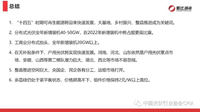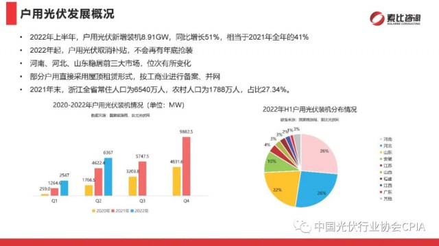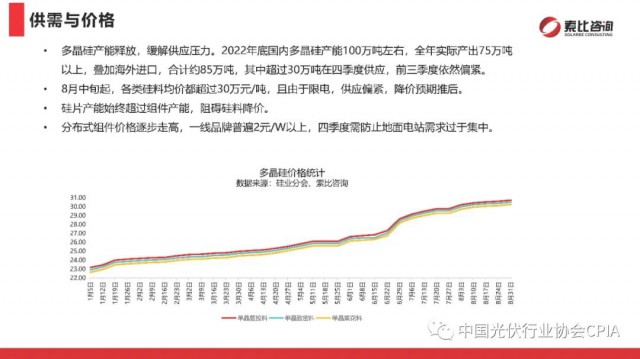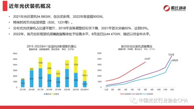 2022年9月27日,在中國光伏行業(yè)協(xié)會的指導和國內領先的分布式戶用企業(yè)支持下,由索比光伏網(wǎng)主辦的“2022年中國戶用光伏品牌大會暨中東部省份分布式項目開發(fā)研討會”在浙江寧波召開。索比光伏網(wǎng)副主編尹也澤對光伏供應鏈與分布式應用市場進行了回顧展望。尹也澤副主編分析,整體看,今年全年全國光伏發(fā)電新增裝機有望超過90GW,其中分布式光伏仍將占據(jù)“半壁江山”。