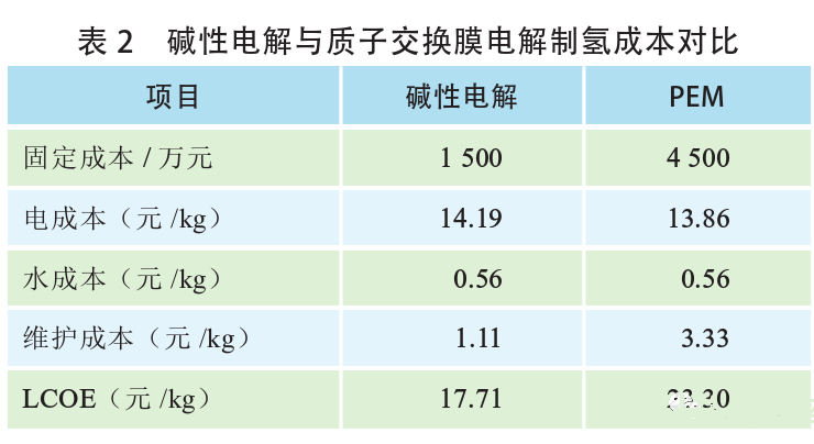 LCOE=固定成本/(制氫量×壽命)+運行成本 (1)