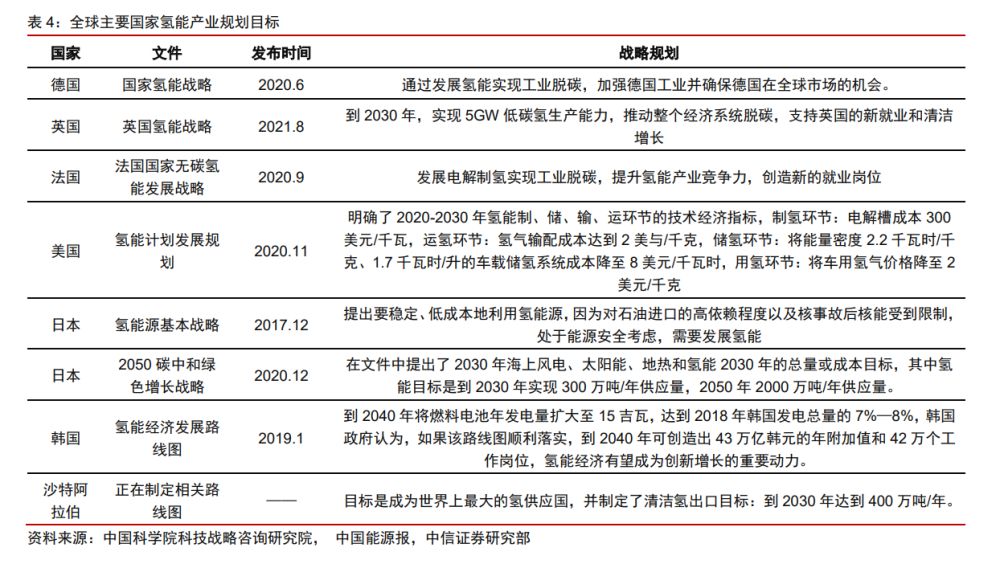全球氫能發(fā)展相對領先的地區(qū)有美國、歐洲、日韓,而沙特阿拉伯、阿聯(lián)酋等中東國家也瞄準了氫能,沙特阿拉伯雖未發(fā)表書面文件,但是已經提出了氫能戰(zhàn)略目標。