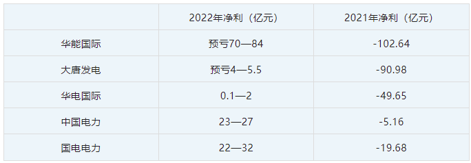 由于燃料價格居高不下,浙能電力2022年預計2022年年度實現(xiàn)歸屬凈利潤為-15.1億元到-22.61億元。桂東電力預計出現(xiàn)2億元左右的虧損。地處煤城山西的晉控電力,預計2022年歸母凈利潤虧損6.5億元—8億元,同比由盈轉(zhuǎn)虧?;涬娏、*ST華源、豫能控股、金山股份分別同比虧損26—28億元、9.2億元、19.5—23億元、18.24—23.24億元。