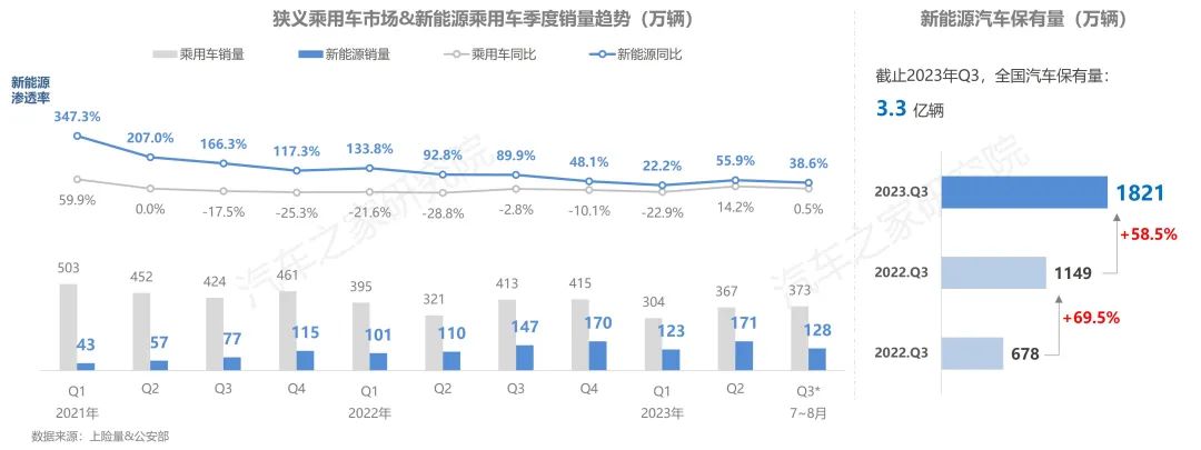 今年以來,國家層面針對(duì)汽車行業(yè)轉(zhuǎn)型升級(jí)的政策頻出,使得中國車企在新能源的浪潮中迎來重大的發(fā)展機(jī)遇。此外,商務(wù)部推動(dòng)“百城聯(lián)動(dòng)”汽車節(jié)和“千縣萬鎮(zhèn)”新能源汽車消費(fèi)季效果顯現(xiàn),這都無疑在讓中國的汽車產(chǎn)業(yè)從生產(chǎn)端與消費(fèi)端兩個(gè)方向,呈現(xiàn)出新能源汽車市場爆發(fā)式增長。目前,中國新能源汽車保有量已經(jīng)突破1800萬輛,今年1-8月新能源乘用車更是取得超420萬輛銷量的成績,同比增長逾三成,市場滲透率持續(xù)保持超30%的高水平發(fā)展。