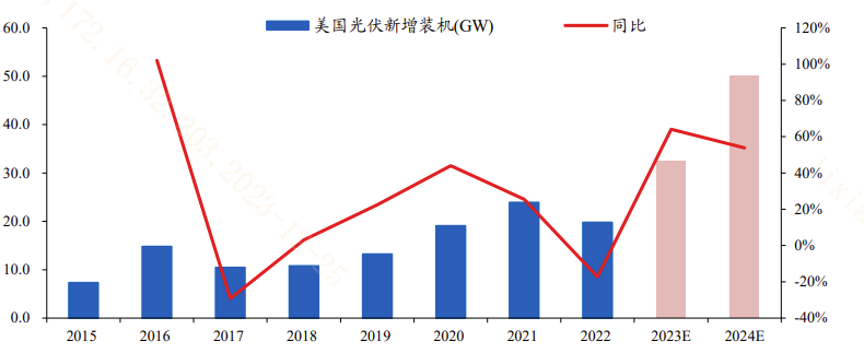 圖:2024年美國(guó)光伏裝機(jī)可達(dá)45-55GW,同比增長(zhǎng)38%-69% (信息來(lái)源:華創(chuàng)證券)
