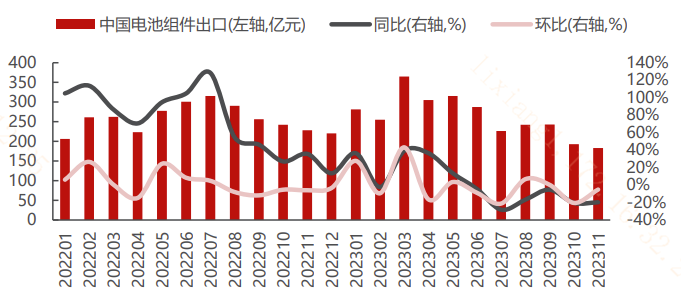 產(chǎn)業(yè)鏈出海維度,11月我國(guó)太陽(yáng)能電池(含組件)出口金額183.06億元,同比-19.73%、環(huán)比-5.14%,自10月以來(lái)單月出口額繼續(xù)低于200億元,但同環(huán)比降幅相較10月份均有所收窄。11月逆變器出口40.22億元,同比-45.94%,環(huán)比+0.91%,環(huán)比迎來(lái)自6月以來(lái)的首次由負(fù)轉(zhuǎn)正。